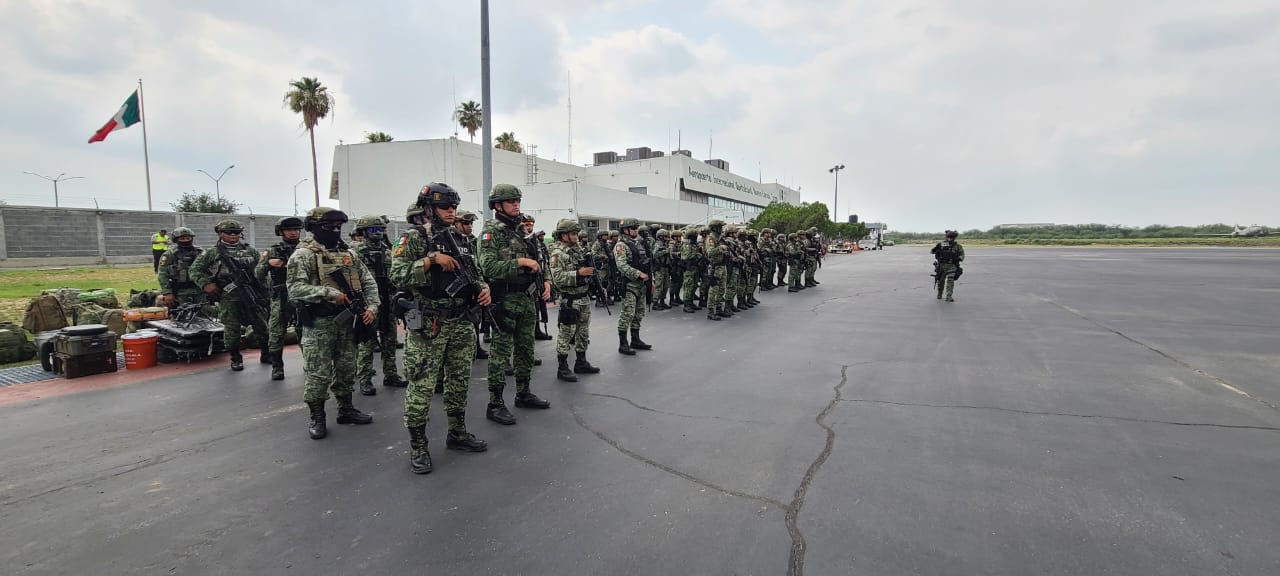 En un comunicado, la dependencia informó que los efectivos castrenses arribaron vía aérea al Aeropuerto Internacional de Nuevo Laredo, en una aeronave perteneciente a la Guardia Nacional, con el fin de contribuir a inhibir las actividades ilícitas, así como preservar y garantizar la libertad, el orden y la paz pública de los habitantes de ese municipio.