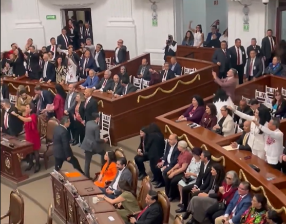 En ese momento, las y los diputados panistas asintieron y se levantaron de sus curules para darle la espalda a Clara Brugada y emprender su retirada del recinto de Donceles y Allende, el cual fue testigo de las miradas de sorpresa de los ahí presentes quienes -casi de inmediato-, dirigieron su atención a la bancada oficial y sus aliados para escuchar los gritos de apoyo a la ponente, quien siguió el discurso.